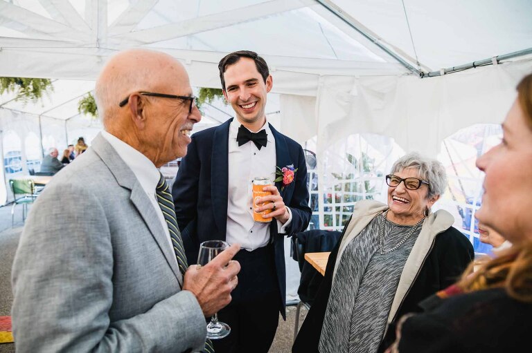 For Jess and Frankie, this flexibility meant they could create a reception space that honored both their original wedding vision and the new chapter of life they were celebrating with their little one. And it gave them options in case of rain!