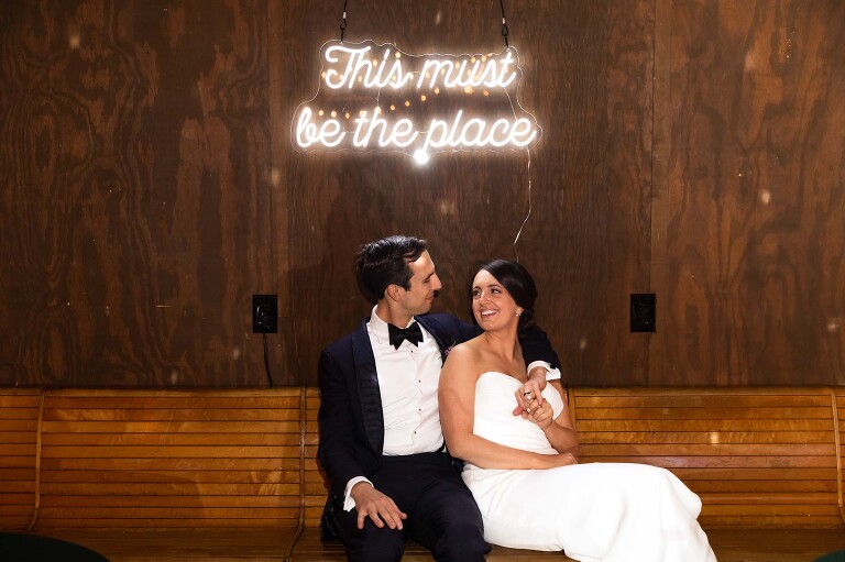 Afterward they hosted a reception in the upstairs hall at Spirit Pittsburgh that perfectly balanced elegance with genuine fun. Jess and Frankie embraced the venue’s grungy-but-cool aesthetic, transforming this unique wedding venue in Pittsburgh with thoughtful personal touches like their custom neon sign on the wall. The industrial elements of the upstairs space provided just the right amount of edge, while their floral choices and warm dj lights added warmth and intimacy.
