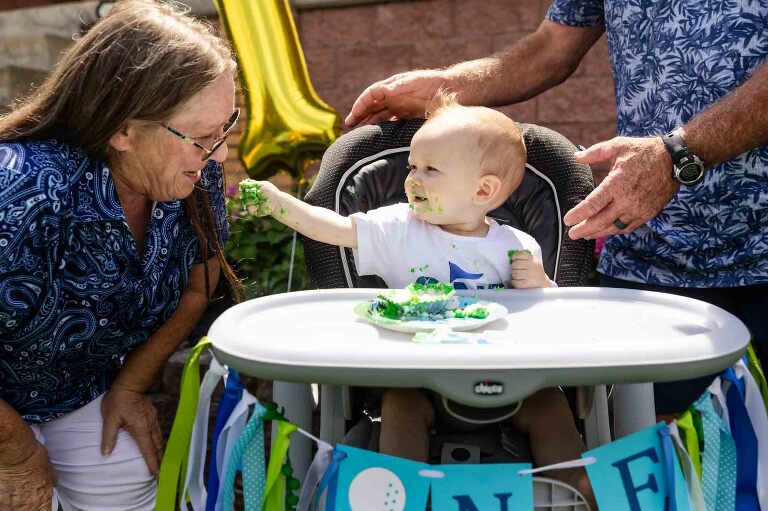 - A smash cake from a favorite local bakery (Oakmont Bakery, Prantl’s, or your neighborhood go-to!) or simply homemade from a loved family member! (Just make sure the icing does not stain! Ask me how I know this… 🙂 )